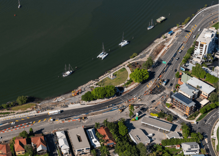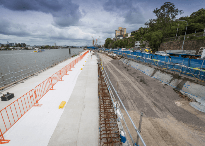 Large Concrete Pumping provided Wagners the exclusive use of a concrete pump for the construction of site-based precast products for Lend Lease on the transformative Kingsford Smith Upgrade. Our pump was onsite 24 hours a day, 7 days a week to keep up with the demanding schedule. This project is set to create an entry statement to Brisbane while improving pedestrian and cycling facilities along the road. A 1.2km river walk with wide cycle lanes and pedestrian paths is set to connect Bretts Wharf in the east to Cameron Rocks in the west. Along with upgrades to Bretts Wharf and Cameron Rocks this pedestrian and cycle corridor will create a destination for Residents and tourists alike to enjoy. For motorists Kingsford Smith Drive will be widened to 6 lanes offering up to 30% of travel time saved. Public transport users will also love new upgraded bus facilities improving bus services along the corridor.